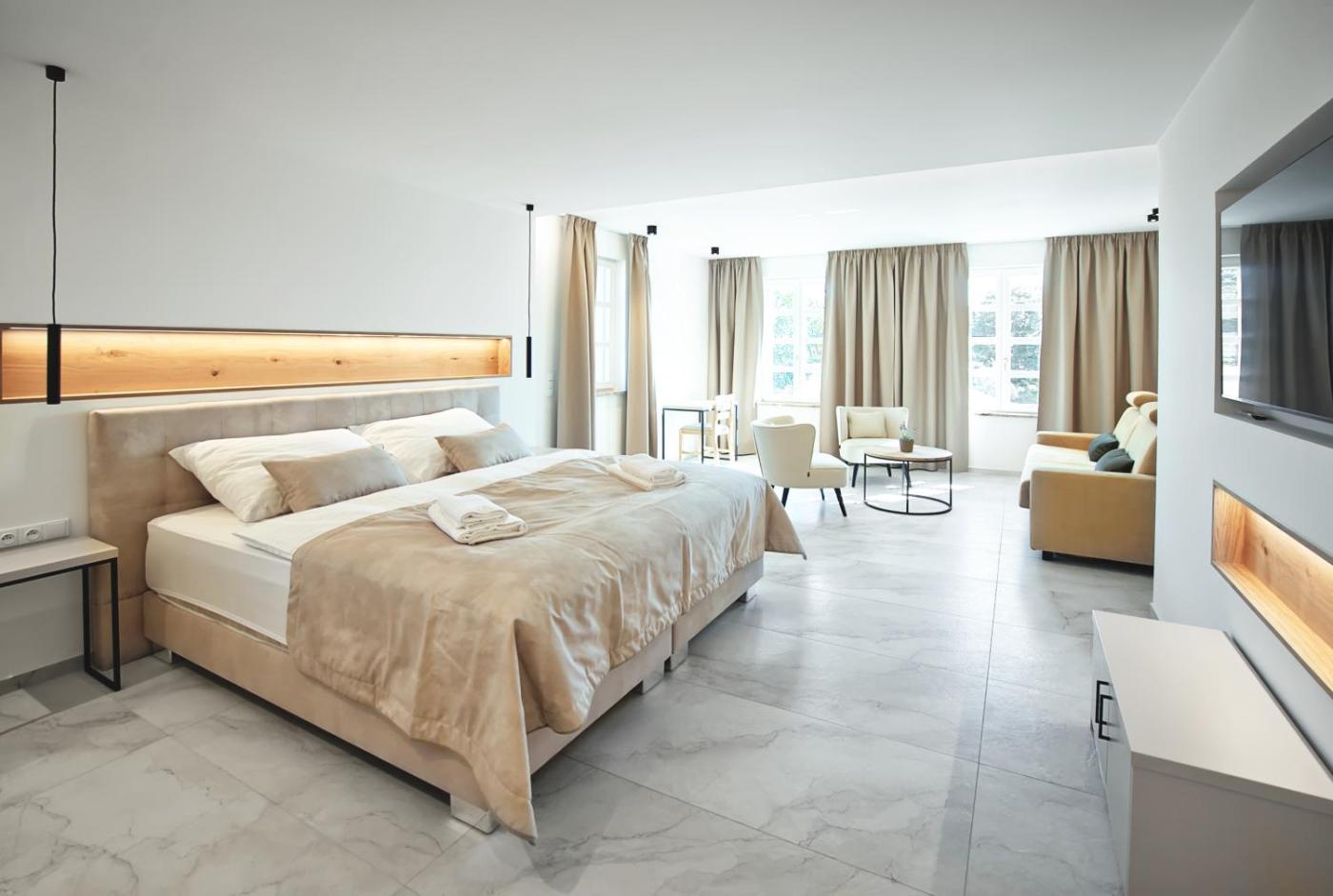 Superior One-Bedroom Apartment. This apartment includes 1 living room, 1 separate bedroom and 1 bathroom with a walk-in shower and free toiletries. The apartment offers air conditioning, soundproof walls, a coffee machine, a wardrobe, as well as a flat-screen TV. The unit has 2 beds. ;