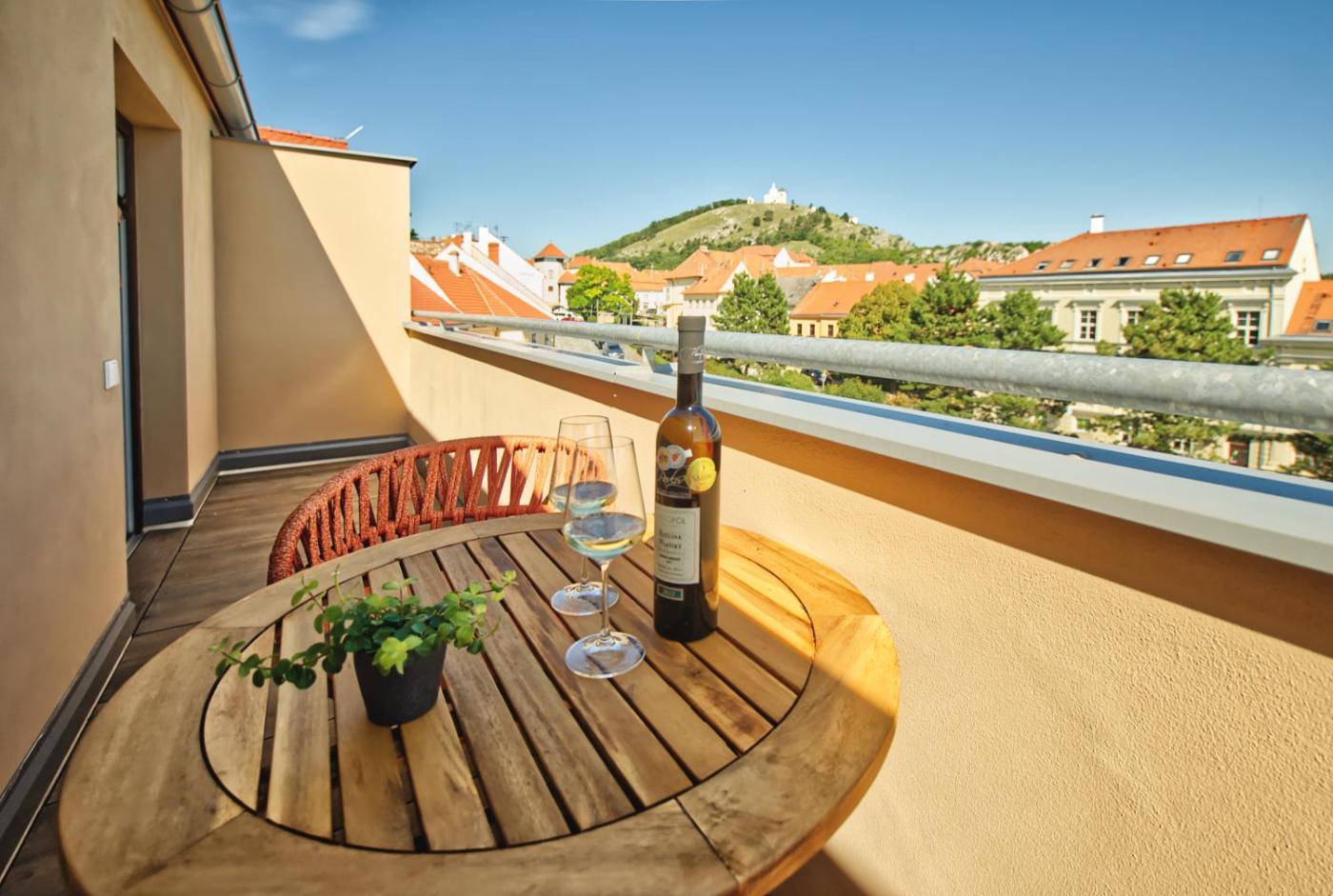Boasting a bar and views of city, Enotéka Vinofol - winebar & café & apartments is a recently renovated apartment situated in Mikulov, 13 km from The Valtice Palace. The property features quiet street views and is 15 km from Lednice Chateau and 50 km from Špilberk Castle. The apartment has family rooms.