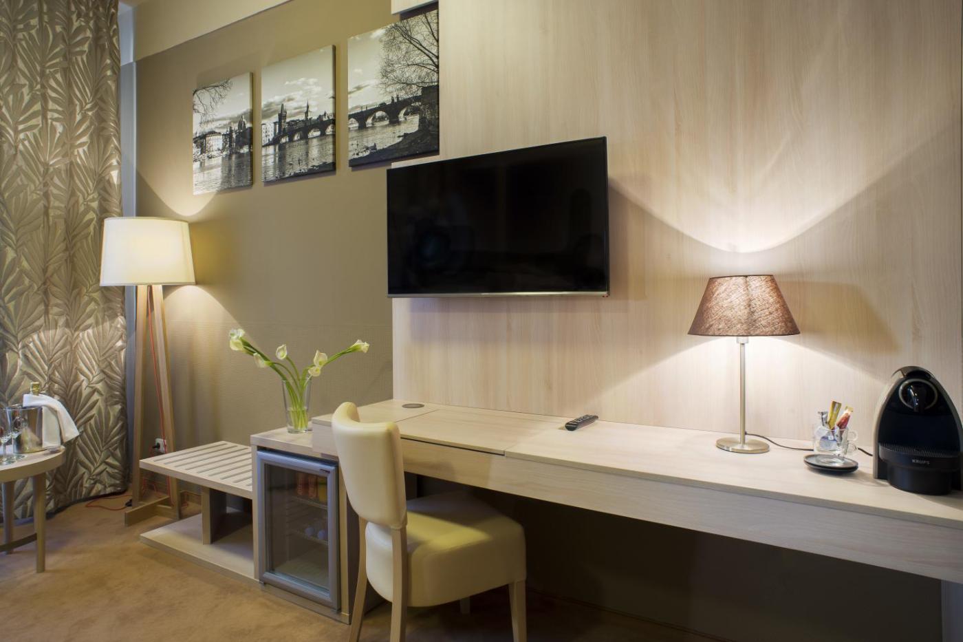 Single Room. This room features a satellite TV and comes with a bathroom with a shower. It provides view of a quiet street, Čertovka canal and the French Embassy or Liechtenstein Palace. ;