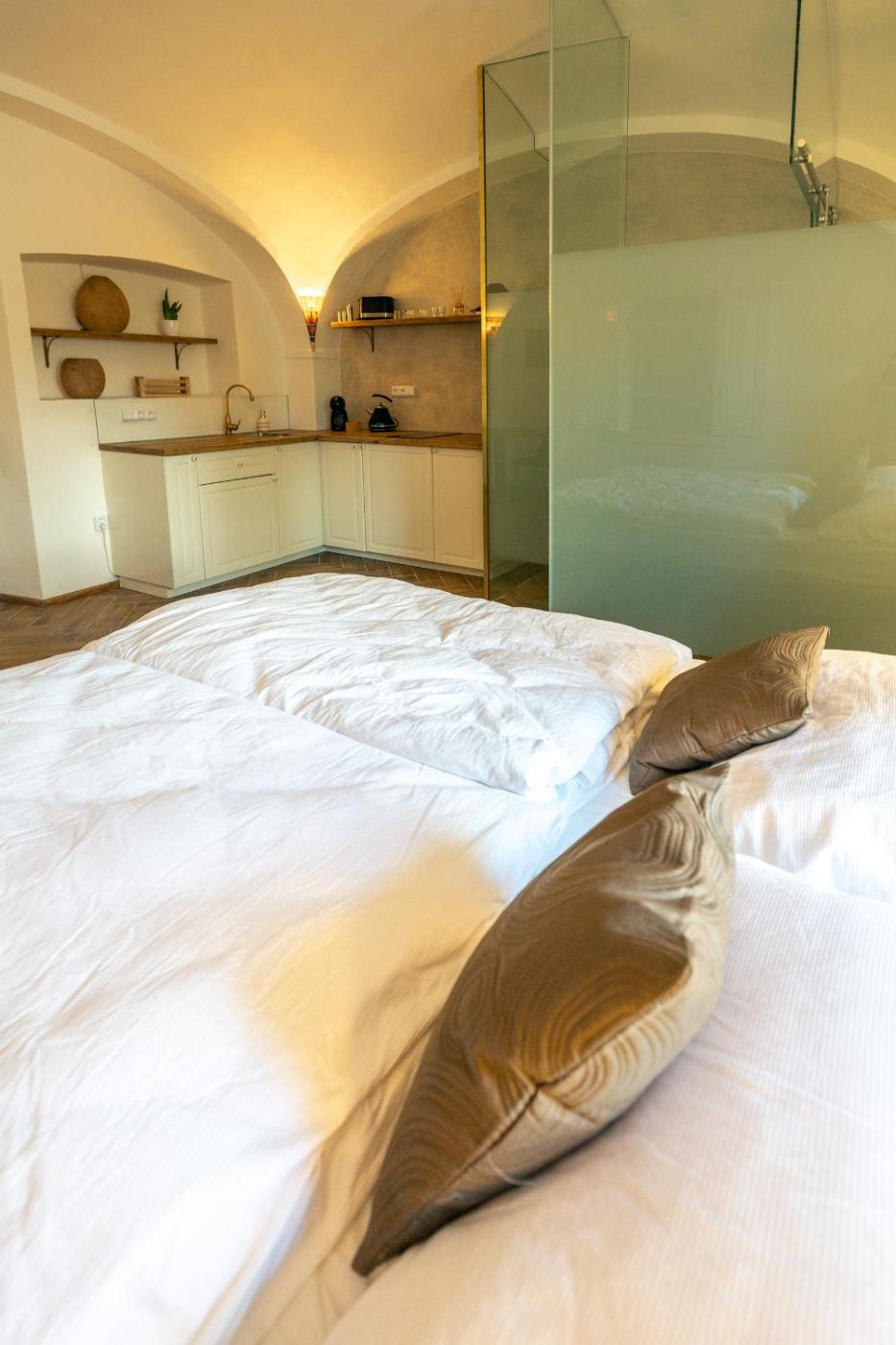 Deluxe Double Studio. In the kitchenette, guests will find a stovetop, a refrigerator, kitchenware and a microwave. The studio offers a minibar, a tea and coffee maker, a terrace with city views as well as a private bathroom boasting a shower. The unit has 1 bed. ;