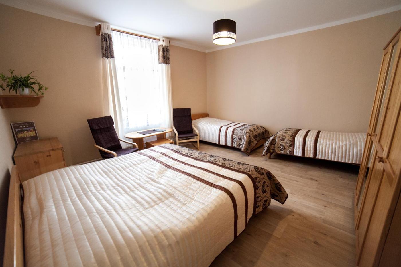 Triple Room. The triple room provides a wardrobe, heating, as well as a private bathroom featuring a shower and a hairdryer. The unit offers 2 beds. ;